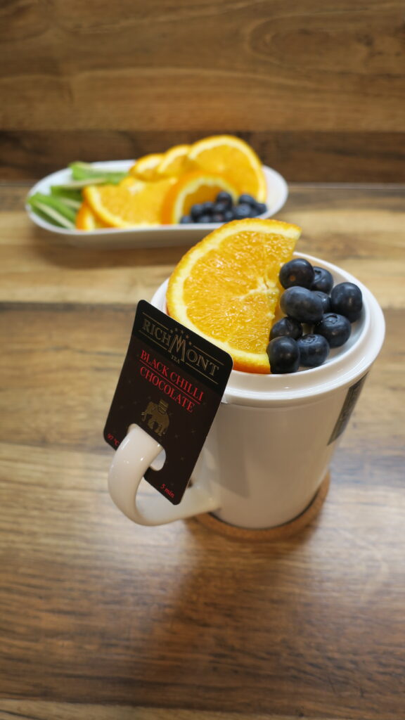 - porcelanowy kubek z logo Richmont o pojemności 450 ml – idealny do delektowania się ulubioną herbatą,