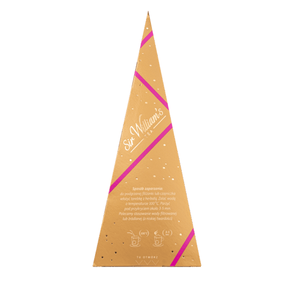 Sposób zaparzania: Do podgrzanej filiżanki lub kubka włożyć torebkę z herbatą Sir William’s Tea. Zalać wodą o temperaturze 100 °C. Parzyć pod przykryciem około 3-5 minut. Polecamy stosowanie wody filtrowanej lub źródlanej (o niskiej twardości).