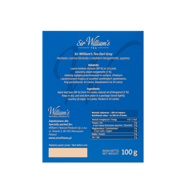 Sir William’s Tea Earl Grey 100g – herbata sypana.