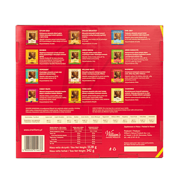 Każdy smak zawiera 15 saszetek, co daje razem 90 porcji doskonałej herbaty.
