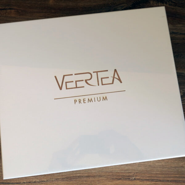 Ekskluzywna Kolekcja Herbat Veertea Premium – 180 saszetek dla prawdziwych koneserów smaku w białej drewnianej skrzynce.