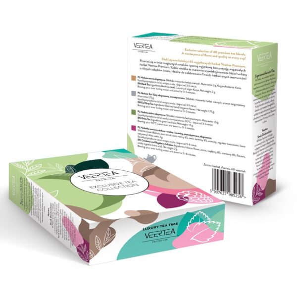 Podaruj sobie lub bliskim chwilę pełną aromatu, smaku i elegancji. Herbaciarka Veertea Premium to ekskluzywny zestaw 40 wybornych herbat zamkniętych w stylowym pudełku, które zachwyca swoim wyglądem i klasą. Każda saszetka zapakowana jest w piękną, indywidualną kopertkę, dzięki czemu każda filiżanka herbaty staje się małym rytuałem przyjemności.
