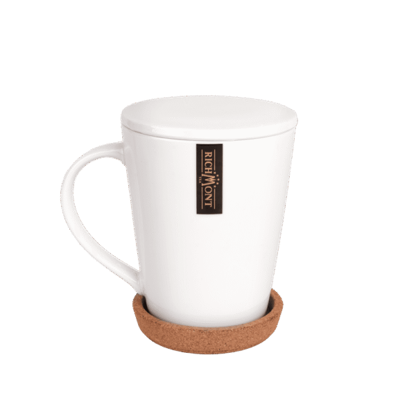 Zestaw doskonale sprawdzi się jako stylowy prezent dla miłośników herbaty lub wyrafinowane uzupełnienie zastawy w domu, biurze czy restauracji. Każdy element łączy w sobie funkcjonalność i estetykę – od delikatnego porcelanowego kubka z logo Richmont, po dopasowane wieczko utrzymujące ciepło naparu i naturalną podstawkę korkową, która chroni powierzchnię stołu.