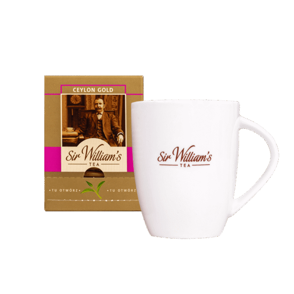 Szukasz wyjątkowego prezentu? Elegancki zestaw Sir William’s Tea to doskonały wybór! W komplecie znajdziesz porcelanowy kubek o pojemności 250 ml oraz 15 kopert aromatycznej herbaty czarnej Ceylon Gold – klasyki w najlepszym wydaniu.